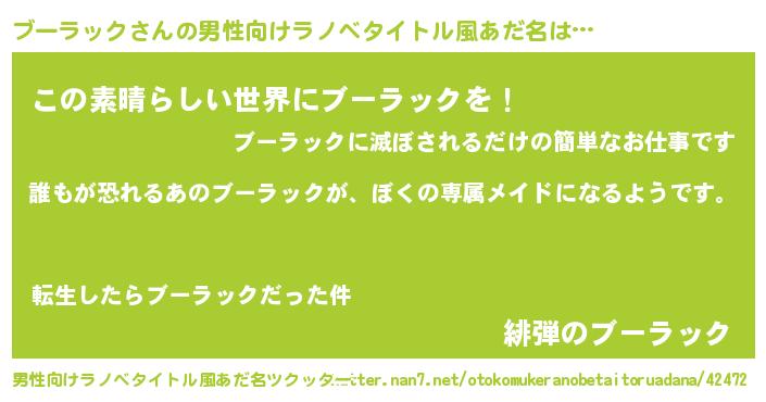 | 胡散臭い通販商品みたいなあだ名 | 『来世でも幸せになれる健康食品…その名も「ブーラック」』 |