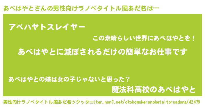 | 女子向けラノベタイトル風あだ名 | 『横柄あべはやとと宰相陛下』 |