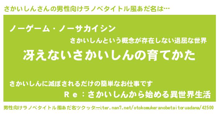 | ヒーロー風カッコイイあだ名 | 『慈愛の使者さかいしん』『暗黒騎士サカ』 |