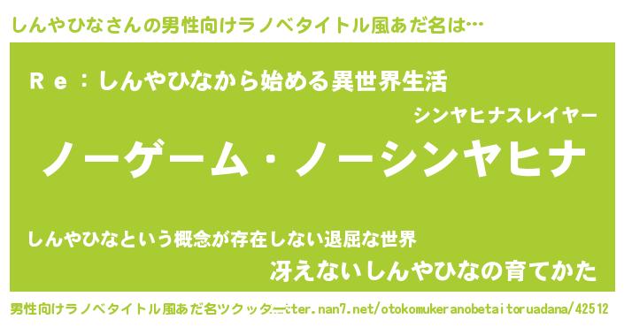 | ヘコむあだ名 | 『しんやひな(苦笑)』『酢こんぶ』 |