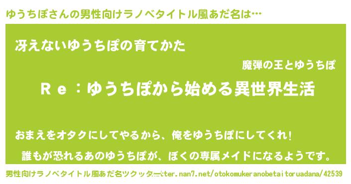 | ヘコむあだ名 | 『ゆうちぽ(笑)』『豆乳』『ゆうお』 |