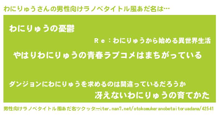 | 女子向けラノベタイトル風あだ名 | 『わにりゅうの雑貨屋さん』 |