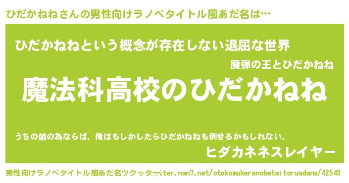 | 女子向けラノベタイトル風あだ名 | 『ひだかねねなんてお断りですっ。』 |