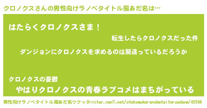 | 胡散臭い通販商品みたいなあだ名 | 『信頼と実績のネックレス…その名も「クロノクス」』 |