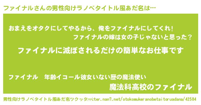 | 胡散臭い通販商品みたいなあだ名 | 『モンドセレクションを受賞した隕石のかけら…その名も「ファイナル」』 |