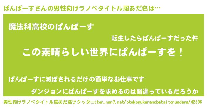 | 意味不明あだ名 | 『住所不定無職ぱんぱーす(86歳)』 |