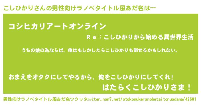 | ファンタジー風あだ名 | 『エターナルコシヒカリー』『コシフェル』 |