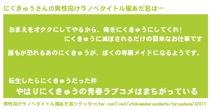 | 胡散臭い通販商品みたいなあだ名 | 『前代未聞の健康食品…その名も「にくきゅう」』 |