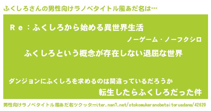 | 胡散臭い通販商品みたいなあだ名 | 『絶対に幸福をもたらす水素水…その名も「ふくしろ」』 |