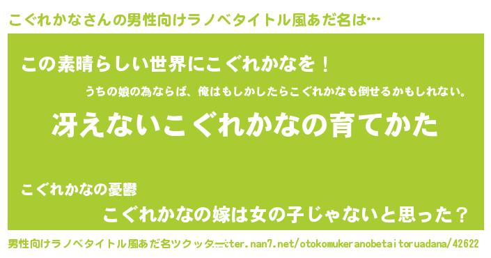 | 胡散臭い通販商品みたいなあだ名 | 『世界中を虜にした100年もののヴィンテージワイン…その名も「こぐれかな」』 |