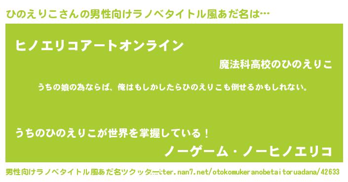 | 意味不明あだ名 | 『ひのえりこフォーエバー』 |