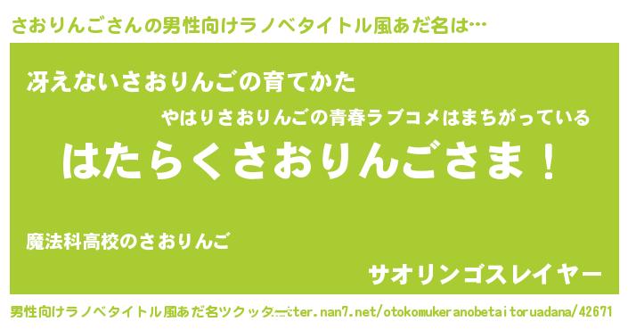 | 胡散臭い通販商品みたいなあだ名 | 『世界が平和になる高級そうな壺…その名も「さおりんご」』 |