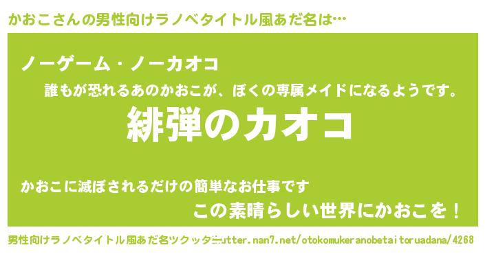 | ヘコむあだ名 | 『かおこ(笑)』『酢こんぶ』『かおお』 |
