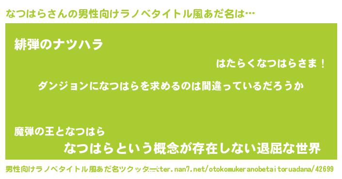 | 女子向けラノベタイトル風あだ名 | 『なつはらの卵を拾いまして』 |