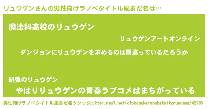 | 胡散臭い通販商品みたいなあだ名 | 『信頼と実績のネックレス…その名も「リュウゲン」』 |