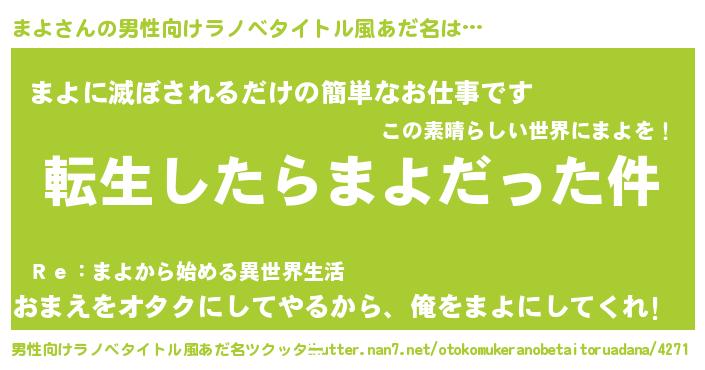 | 女子向けラノベタイトル風あだ名 | 『まよの玉の輿計画!』『まよ恋絵巻』 |