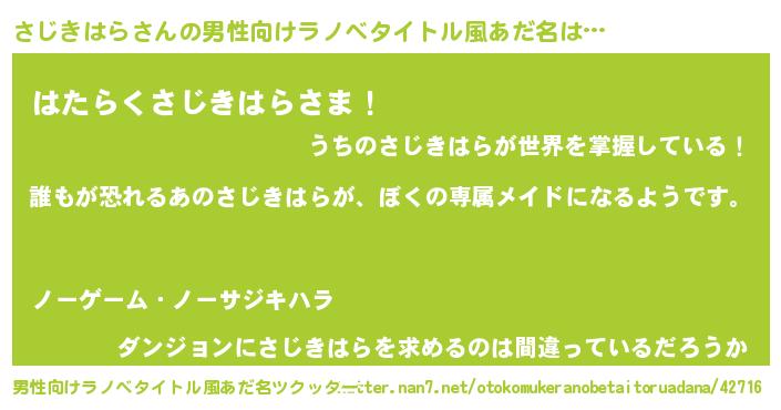 | 意味不明あだ名 | 『永久保存さじきはら』『自称さじきはら』 |