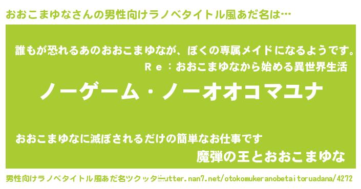 | 伝説のあだ名 | 『救世主となる占い師おおこまゆな』 |