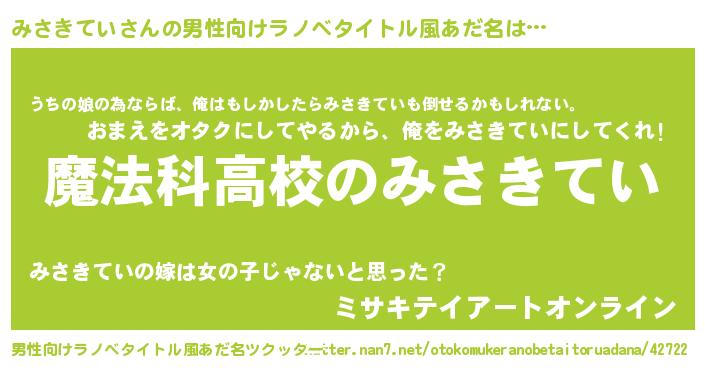 | 女子向けラノベタイトル風あだ名 | 『みさきていなんてお断りですっ。』 |
