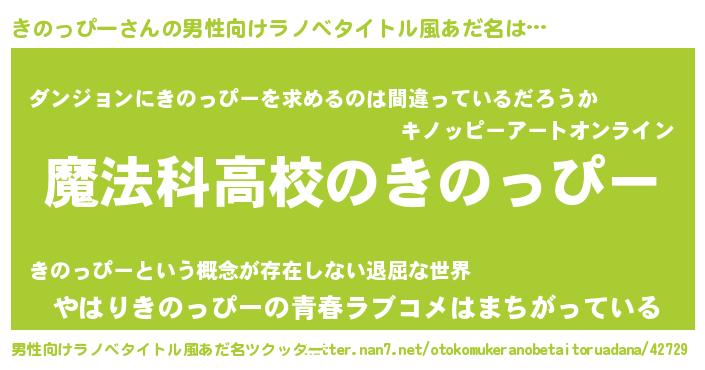 | ヒーロー風カッコイイあだ名 | 『超時空戦士キノッピー』『黄金騎士キノ』 |