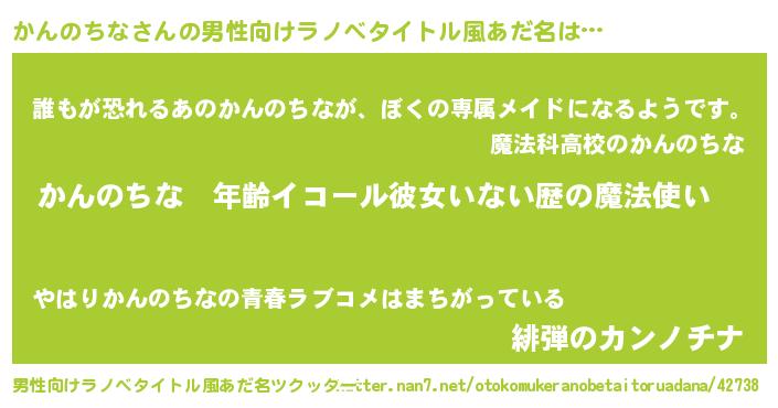 | ヒーロー風カッコイイあだ名 | 『ネオカンノチナ』『最強戦士カンノチナ』 |