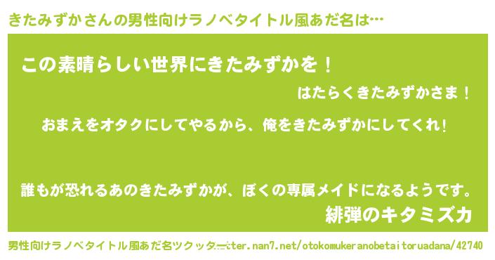 | 女子向けラノベタイトル風あだ名 | 『きたみずか夫妻のなれそめ』 |