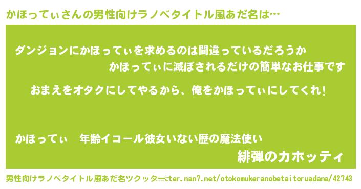 | 胡散臭い通販商品みたいなあだ名 | 『100人中100人が認めたイリジウム磁石…その名も「かほってぃ」』 |