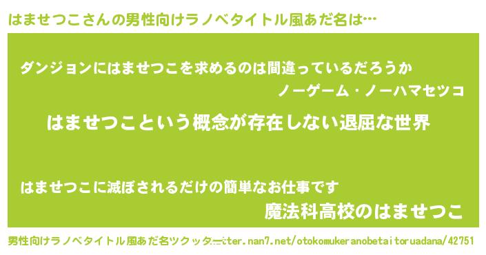 | 意味不明あだ名 | 『永久保存はませつこ』『自称はませつこ』 |