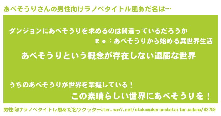 | 意味不明あだ名 | 『永久保存あべそうり』『自称あべそうり』 |