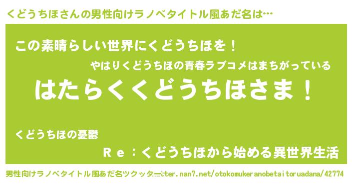| 意味不明あだ名 | 『住所不定無職くどうちほ(39歳)』 |