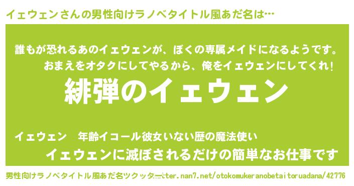 | ヘコむあだ名 | 『イェウェン(笑)』『イェぷりん』 |