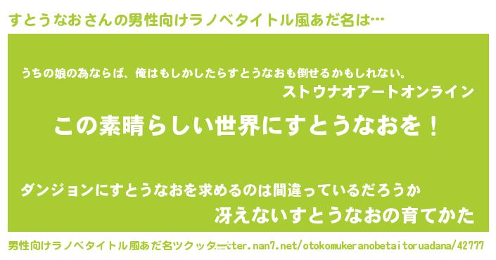 | 胡散臭い通販商品みたいなあだ名 | 『あなたにだけ特別に提供する100年もののヴィンテージワイン…その名も「すとうなお」』 |