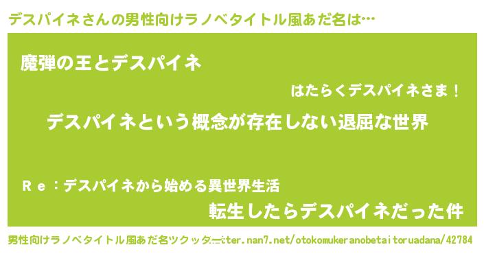 | 胡散臭い通販商品みたいなあだ名 | 『来世でも幸せになれる健康食品…その名も「デスパイネ」』 |