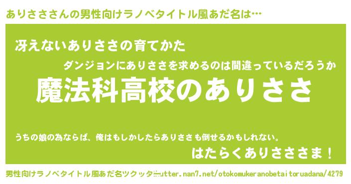 | ヒーロー風カッコイイあだ名 | 『サイバー戦士アリササ』『暗黒騎士アリ』 |