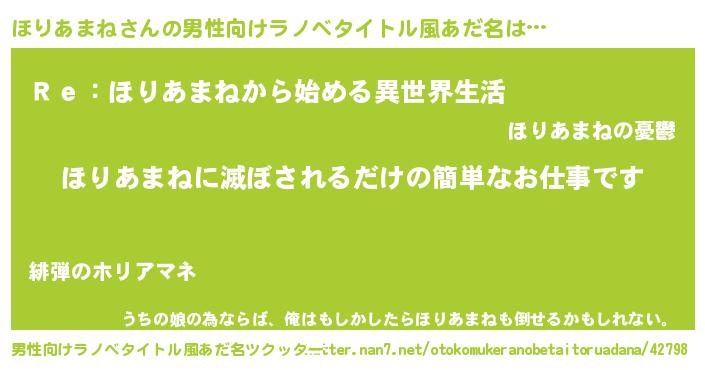 | 胡散臭い通販商品みたいなあだ名 | 『芸能人もオススメする高麗人参…その名も「ほりあまね」』 |