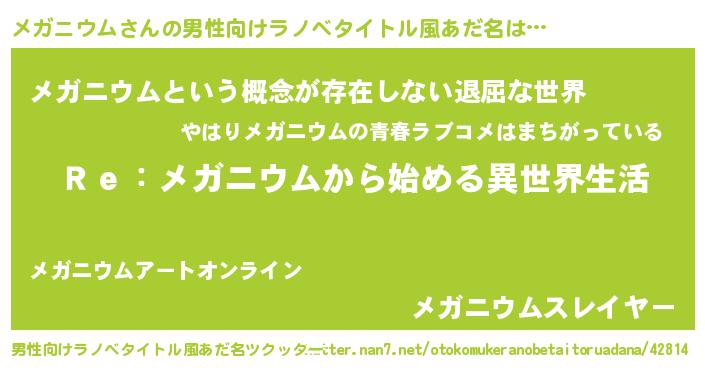 | 女子向けラノベタイトル風あだ名 | 『闇のメガニウム』 |