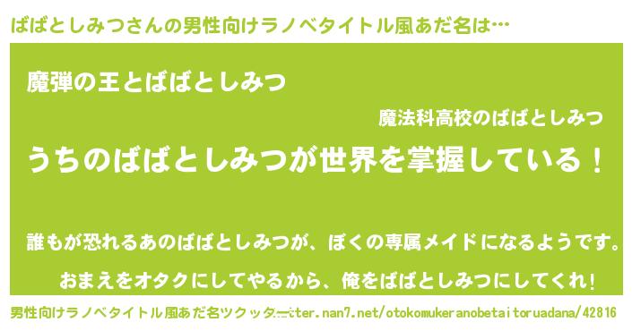 | ヘコむあだ名 | 『ばばとしみつ(苦笑)』『ばば太郎』 |