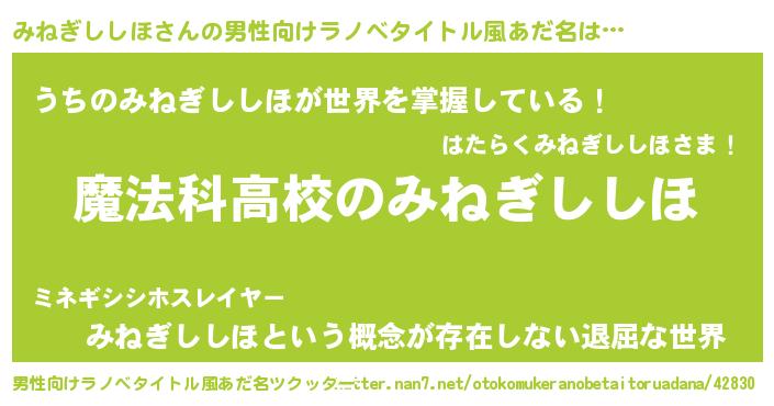 | 意味不明あだ名 | 『自称みねぎししほ』 |