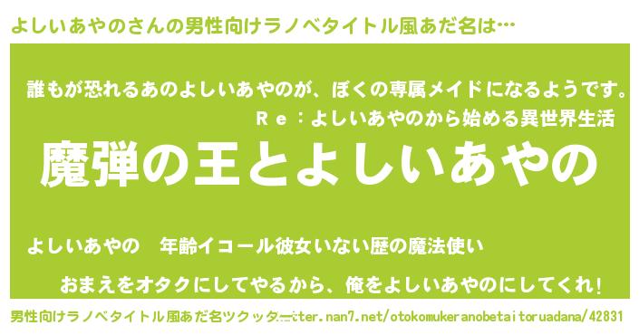 | 伝説のあだ名 | 『聞きしに勝る勇者よしいあやの』 |