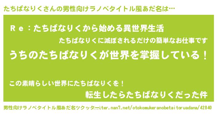 | 意味不明あだ名 | 『自称たちばなりく』 |