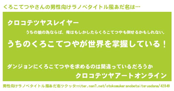 | 女子向けラノベタイトル風あだ名 | 『男装くろこてつやの憂鬱な任務』 |