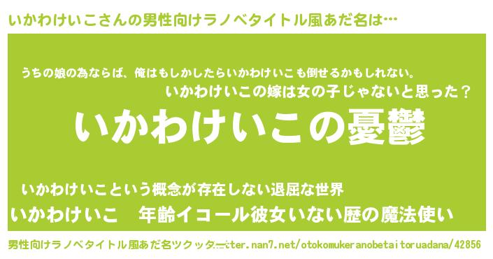 | 胡散臭い通販商品みたいなあだ名 | 『必ず成功する霊験あらたかなお札…その名も「いかわけいこ」』 |