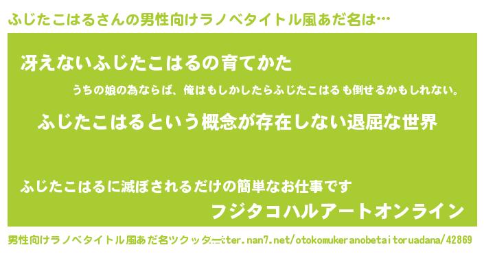 | 胡散臭い通販商品みたいなあだ名 | 『来世でも幸せになれる健康食品…その名も「ふじたこはる」』 |