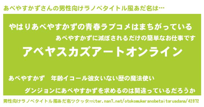 | 肩書あだ名 | 『あべやすかず御曹司』 |