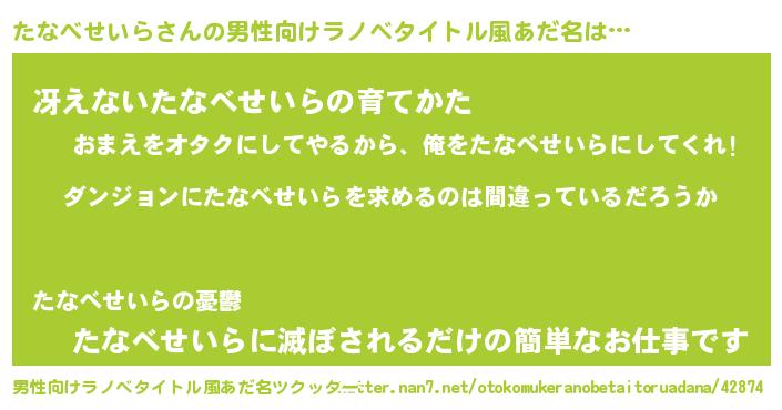 | 女子向けラノベタイトル風あだ名 | 『たなべせいらは平凡を望む』 |