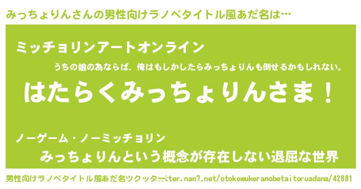 | 胡散臭い通販商品みたいなあだ名 | 『必ず成功するブレスレット…その名も「みっちょりん」』 |