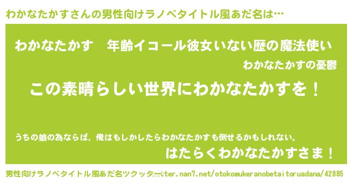 | 意味不明あだ名 | 『住所不定無職わかなたかす(10歳)』 |