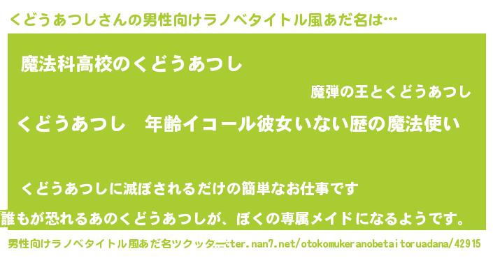 | 女子向けラノベタイトル風あだ名 | 『くどうあつしの玉の輿計画!』 |