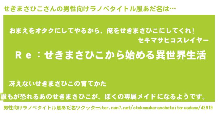 | ヘコむあだ名 | 『せきまさひこ(笑)』『せきお』 |