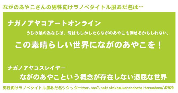 | ヒーロー風カッコイイあだ名 | 『仮面ナガダー』『スーパーナガノアヤコ』 |
